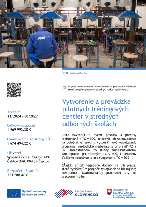 Naša škola sa stala súčasťou národného projektu zameraného na elimináciu negatívnych dopadov klesajúcej dostupnosti kvalifikovanej pracovnej sily na trhu práce.